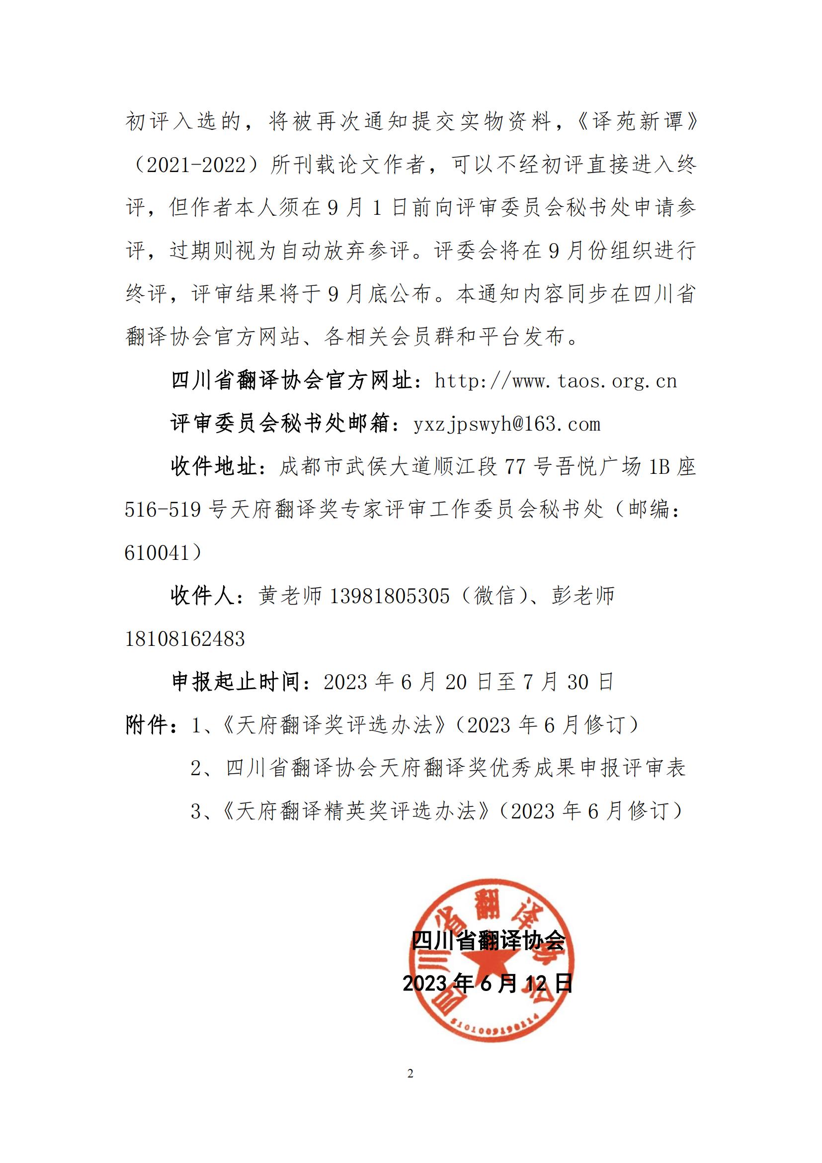 受四川省翻译协会领导委托,本司协助专家评审委员会组织本届“天府翻译奖”和“天府翻译精英奖”,我们将严格按照《天府翻译奖评选办法》、《天府翻译精英奖评选办法》的规定和领导要求,把好事办好。感谢协会领导的信任,也感谢业界同行及合作伙伴的关注和支持!