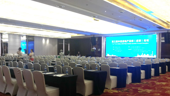 今日,中美房地产高峰(成都)论坛在成都世外桃源大楼会议中心开幕。应组委会邀请,我公司派出英语同传译员为论坛作翻译服务,所派译员精心准备,认真对待,最终不负使命,使得论坛顺利圆满。(图为论坛现场)