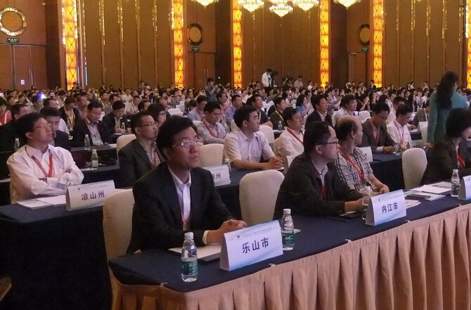第四届中国(西部)高新技术产业与金融资本对接推进会于2014年5月14日在成都新国际会展中心进行,公司承担此会议翻译服务。通过派遣译员的辛勤劳动,会议翻译顺利完成,受到大会参会者和组委会的高度好评。图为会议现场。